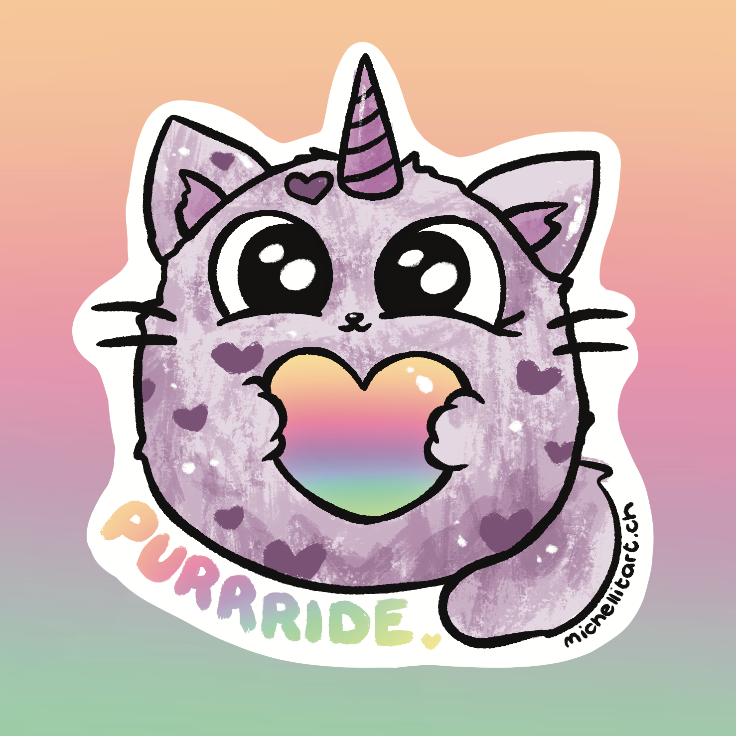 Die Herzen sind gefüllt mit diversen LGBTQ-Flaggen. Damit alle ihre Menschen fürs Leben finden. Stück für Stück, Sticker für Sticker möchte ich damit die Welt zu einem liebevolleren, besseren Ort machen. Einen bunten, magischen Ort.